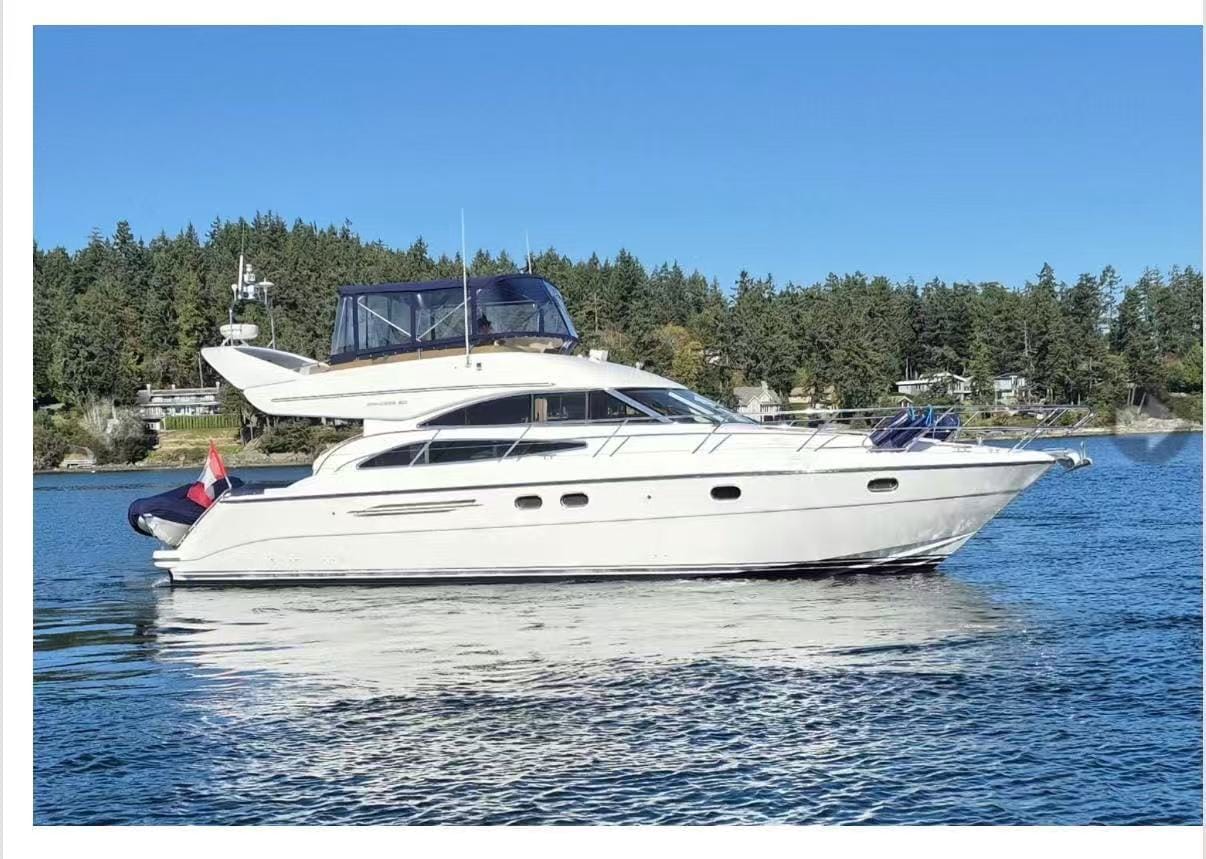 Private hourly yacht charter on a Princess P50 (50ft)—up to 12 guests