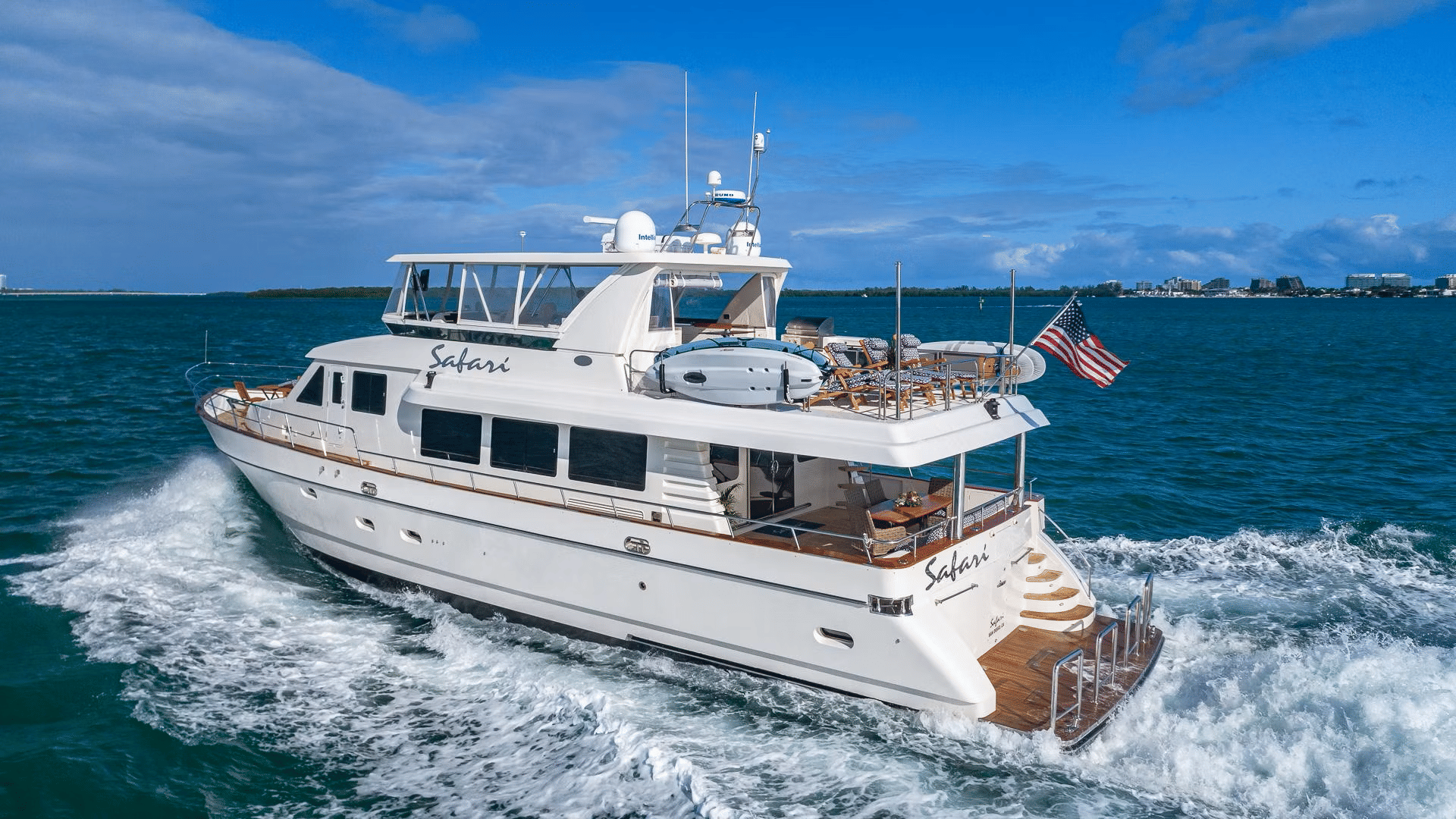 - Private hourly yacht charter on an 80’ Symbol Pilothouse—up to 25 guests