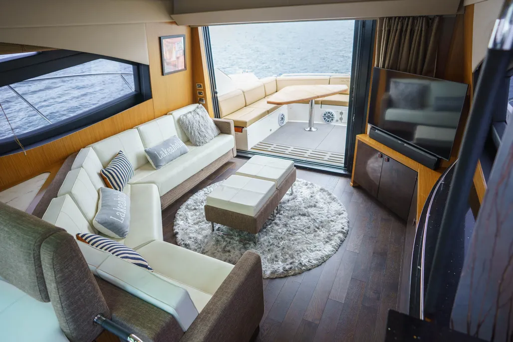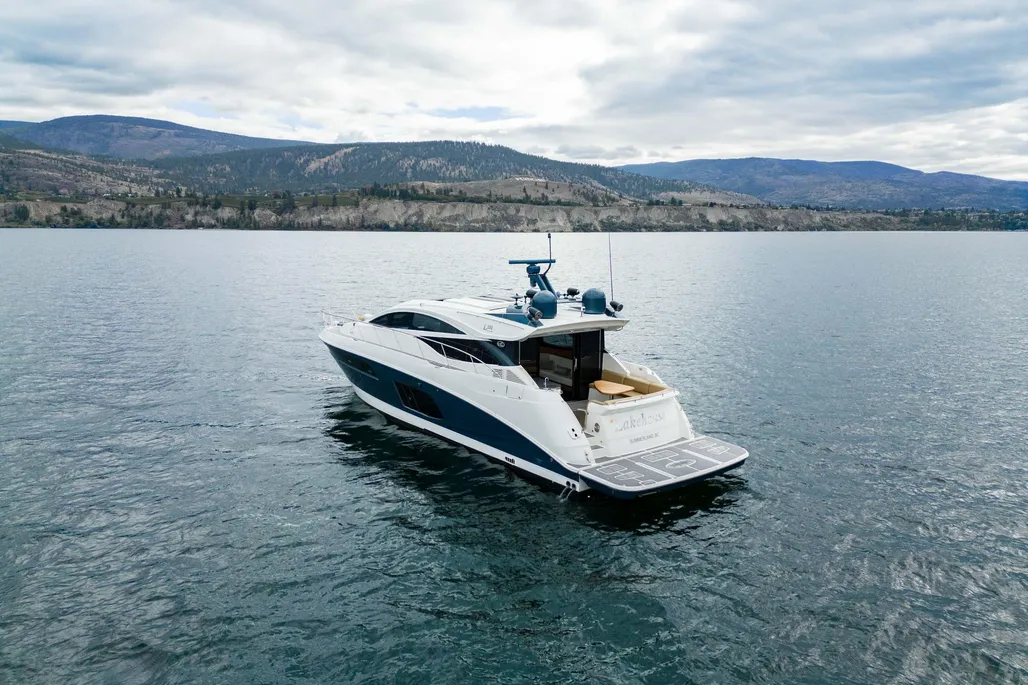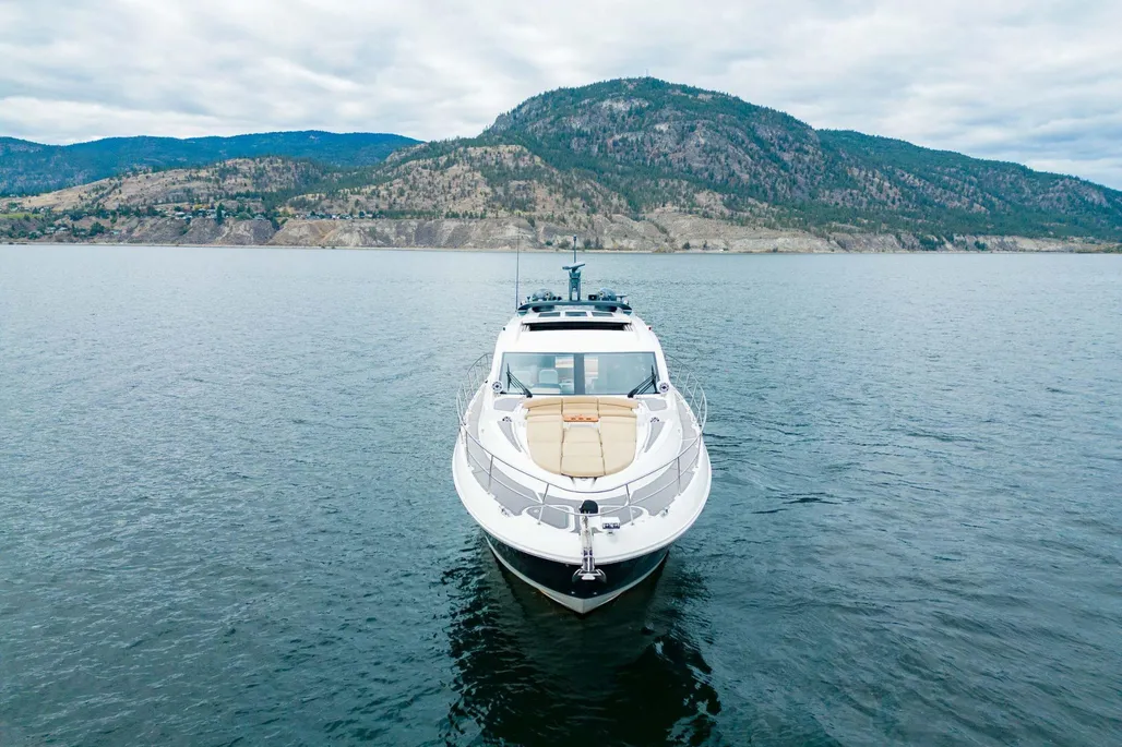 Don’t miss this rare opportunity to own a luxury yacht at an unbeatable value! Located on Okanagan Lake in Kelowna, BC, this stunning 2016 Sea Ray L590 Express combines sleek styling with performance and luxury. Featuring a striking blue hull, new interior and exterior flooring, and meticulously maintained engines, this yacht is fully equipped and ready to hit the water. Key Features: Upgraded sound system throughout the yacht for premium entertainment. FLIR infrared camera for enhanced safety and visibility during night cruising. Triple Cummins QSC 8.3 600HP Zeus pod drives, fully serviced with no expense spared. Joystick control and Skyhook GPS positioning for easy maneuvering and docking. Hydraulic swim platform, perfect for launching water toys or enjoying easy water access. Onan generator for reliable power on extended trips. Washer and dryer in the guest cabin for added convenience and ease of use on extended journeys. Interior Cabin Layout: Master Stateroom: A luxurious full-beam master cabin featuring an offset queen bed, located in the corner to maximize space. Large windows allow for plenty of natural light, and the en-suite head includes a separate shower, offering a private retreat. VIP Stateroom: Situated forward, it features a centerline queen bed with en-suite access, providing your guests with a comfortable, private space. Guest Cabin: Twin side-by-side berths that can convert into a queen, offering flexibility for accommodating additional guests. The guest cabin is equipped with its own washer and dryer for convenience during extended stays. Salon: Bright and airy with large panoramic windows and a retractable sunroof, the salon provides plenty of space for entertaining. It seamlessly connects to the cockpit, creating an inviting indoor-outdoor living experience. Galley: A well-appointed galley with high-end appliances, including a refrigerator, freezer, microwave, and convection oven, ensures all your culinary needs are met while on board. Deck Layout: Cockpit: Featuring newly upholstered seating, a teak dining table, wet bar, and retractable sunshade, this area is perfect for outdoor lounging or dining. Bow seating: Large forward sunpad and additional seating provide an excellent vantage point for sunbathing or enjoying the views. Hydraulic swim platform: Ideal for launching a tender or water toys and offering easy access to the water. Specifications: LOA: 59 ft 2 in Beam: 16 ft Draft: 4 ft 9 in Fuel Capacity: 1,200 gallons Water C